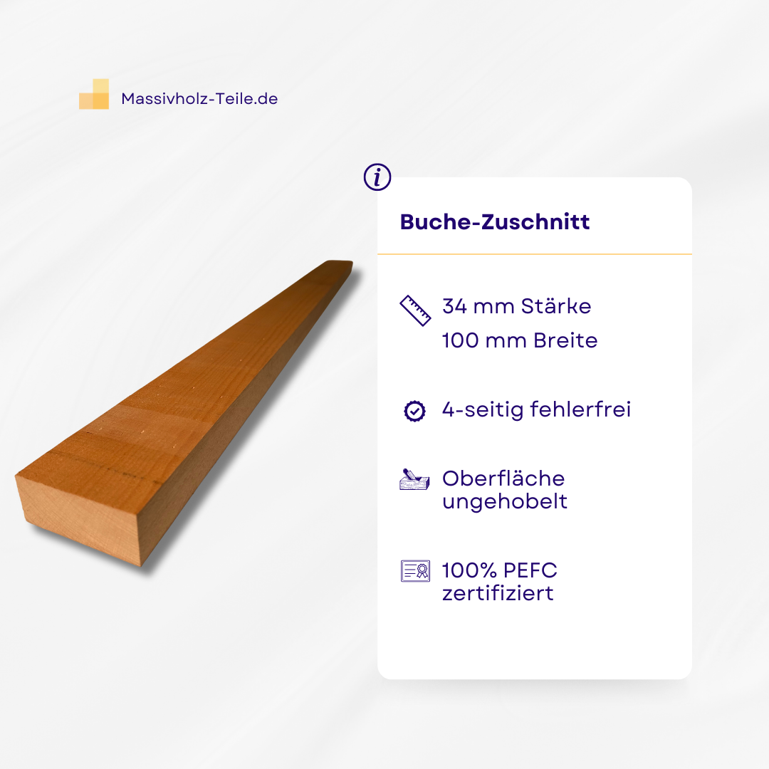 Buche-Zuschnitt, 34mm Stärke x 100mm Breite